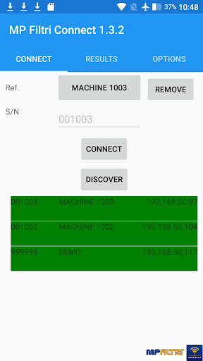 Wirelessly connect to MP Filtri contamination monitoring products using your mobile device Download test data over WIFI Inspect and adjust device settings View test data Upload data to network server
