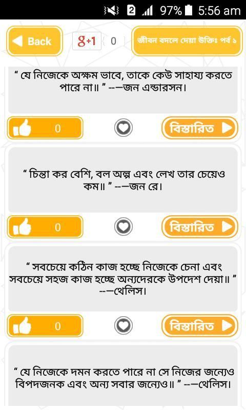 এই বাংলা বানী - ( "البنغالية بني") গুলো অনেকের জীবনেই উল্লেখযোগ্য প্রভাব ফেলবে বলে আশা করছি. এই বাংলা অ্যাপ (التطبيق بني البنغالية) টি নিয়মিত আপডেট করা হবে. আপনারা আর কোন কোন খ্যাতিমান মানুষের উক্তি বা কথা / বানি বাংলায় (البنغالية بني) চাচ্ছেন আমদেরকে ইমেইল অথবা কমেন্ট সেকশনে জানান.