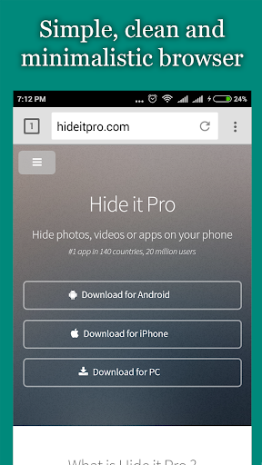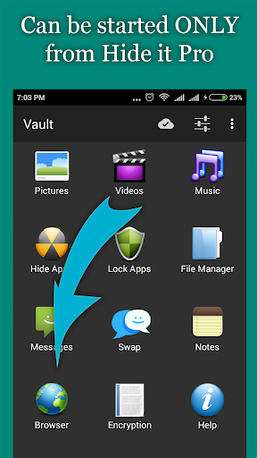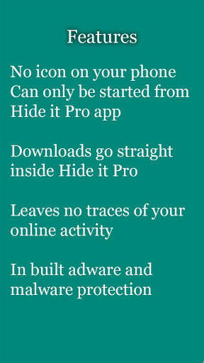vBrowser gives you a fully features web browser which can only be started from within Hide it Pro app.