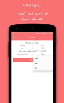 3 - ااختيار صيغة الصوت المراد تحويله (MP3 او غيرها )والنقر على زر التحويل والانتظار لسماع الصوت