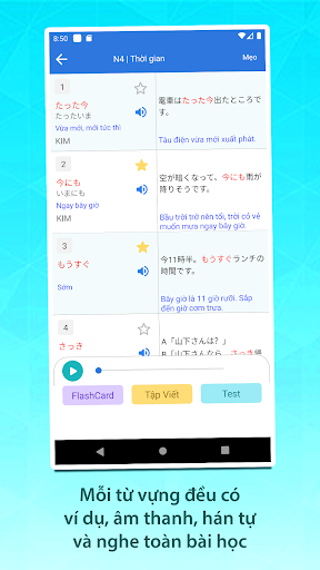 مفردات واحدة، استمع إلى مثال. ليس فقط تعلم المفردات التي يمكنك تقليد نطق الشعب الياباني. انقر فوق الاشياء إلى سياق المفردات. تعلم اللغة اليابانية ليست جافة. تجربة تعلم المفردات أثناء الاستماع إلى نفس التطبيق.