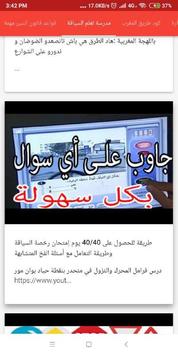 خاص بمساعدة كل المقبلين على اجتياز امتحان رخصة السياقة مع الإجابات الصحيحة لجميع الأسئلة فهو بالنسبة لك بمثابة مدرسة تعليم السياقة بالمغرب لاجتياز رخصة السياقة من خصائصه المميزة انه بالدارجة المغربية