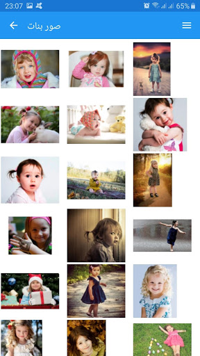 يحتوي تطبيقنا على صور اطفال وبنات صغار وحلوين يمكن تصفحها بدون انترنت وتتفرع الى عدة اقسام من بينها