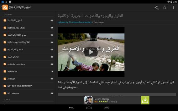 يحتوي البرنامج على مئات الافلام الوثائقيه وكذلك يحتوي على خاصية البحث بالبرنامج ويمكنك إضافة الفيلم الوثائقي للمفضلة و إرساله إلى أصدقائك و نشره على الفيسبوك و كذا مشاهدة الفيلم الوثائقي متى ما اردت.