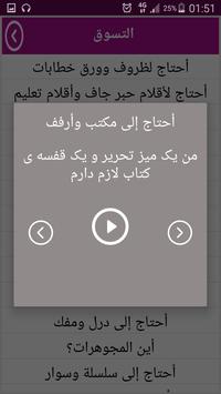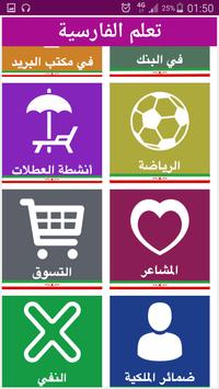 يتحوي التطبيق 33 درس يضم أزيد من 1000 كلمة وجملة باللغتين العربية والفارسية كتابتاً وصوتاً (مع النطق الأصلي للكلمة) والدروس هي كالأتي: