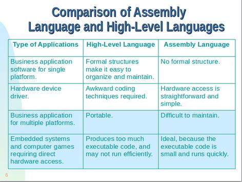An assembly (or assembler) language, often abbreviated asm, is any low-level programming language, in which there is a very strong (but often not one-to-one) correspondence between the assembly program statements and the architecture's machine code instructions.