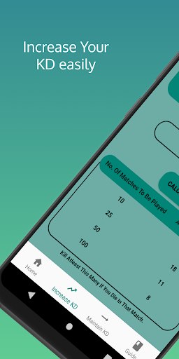 قسم زيادة دينار كويتي- في هذا القسم ، أدخل دينار كويتي الذي تريده وسيحسب التطبيق عدد الأعداء الذين يجب هزيمتهم في كل مباراة للحصول على دينار كويتي الذي تريده.