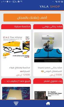 من خلال استخدام تطبيق Yala Shop يمكنك أيضاً من الترويج لمنتجاتك من خلال إضافة إعلانك بشكل مجاني كلياً عن طريق إضافة التفاصيل الخاصة بالمنتج مع إمكانية إضافة صور للمنتج وإضافة السعر المطلوب.