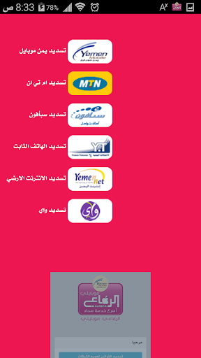 الرفاعي موبايلي - تطبيق لتسديد شبكات الاتصالات اليمنية والمياة والكهرباء.