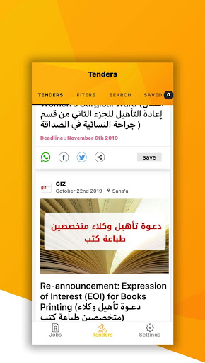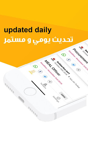 Our app will provide you with all the recently posted jobs/tenders in Yemen on timely bases. All the job/tender ads are updated and posted on daily bases so you will never miss a single listing.
