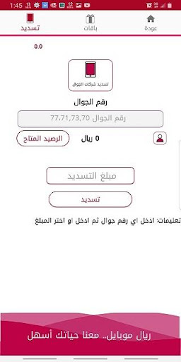 من خلال رصيدك الالكتروني يمكنك القيام بسداد وشحن رقمك او رقم مشترك آخر، كما يمكنك تفعيل الباقات المختلفة باستخدام الطرق التالية: