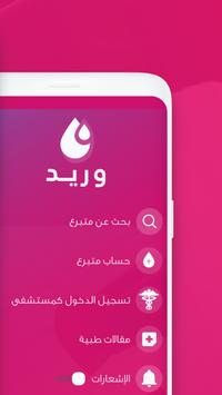 - ستتعرف من خلال تطبيق "وريد" على أهمية التبرع بالدم من خلال نافدة خاصة للتوعية بأهمية التبرع بالدم تحتوي على مقالات طبية ، ومن السهل مشاركة المقالات التي أعجبتك عن طريق الأيقونات الخاصة بمواقع التواصل الإجتماعي.