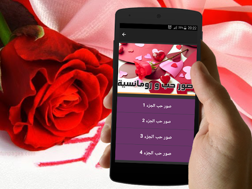 سوف يمكنك يحتوي هذا التطبيقعلى مجموعة متنوعة من صور الحب و صور رومانسية للعشاق. ويحتوي كذلك على مقولات للحب مصورة وخلفيات رومانسية .