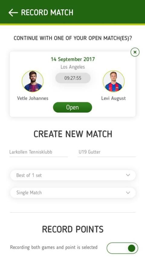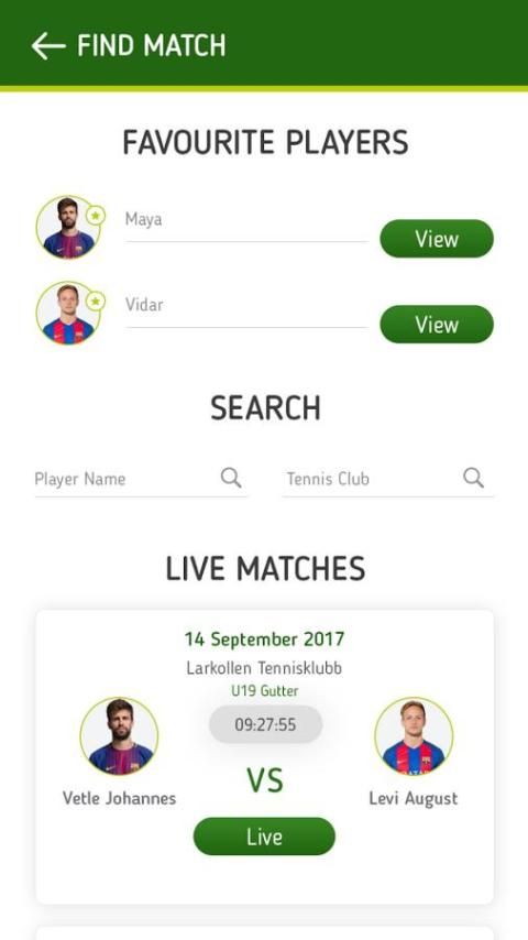 تتبع مباريات التنس الخاصة بك أو عرض أخرى مباريات الهواة أو المهنية في جميع أنحاء العالم. نقاط المسار والألعاب ومجموعات والتطبيق بتتبع وقت البدء، وقت الانتهاء ومدة المباراة، فضلا عن غيرها من المعلومات الاختيارية مثل اسم البطولة والانقسام وأسماء لاعب. كلها عشرات مباراة متاحة للجميع مع التطبيق - لايف، مما يجعل من السهل لتبادل النتائج ومتابعة البطولات.