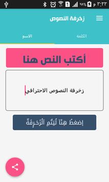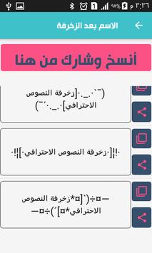 زخرفة الكتابة و زخرفة كتابة على كيفك يوجد العدد من اشكال النصوص و الزخارف و زخرفة احترافية و كما التطبيق يدعم الاوان و مميزة زخرفة الاسماء و رموز و اشكال زخرفة الفيس بوك و زخرفة خط الفيس بوك زخرفة انجليزي و انجيليزي معرب و كما يمكنك من خلال البرنامج تشكيل الحروف و حروف مزخرف كما ترغب لا تتردد في تحميل التطبيق زغرفه تستطيع من خلال البرنامج تشكيل الكلمات و تشكيل البرودكاست يمكن نسخ النص عن طريق الضغط على زر النسخ او مشاركة النص على مواقع التواصل الاجتماعي مثل فيس بوك وتطبيقات التواصل مثل واتس أب وفيس بوك ويوجد في صور التطبيق صور تبين ذلك , كما يمكن ان تستخدم النصوص المزخرفة لإرسالها رسائل جوال مزخرفة للأصدقاء و مشاركتها عبر الفيس بوك كمنشور مزخرف