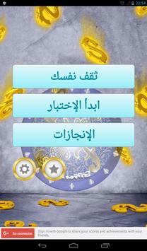 القسم الثاني هو قسم " الإختبار " ، سيضهر لك سؤال و اربع احتمالات و انت ستختار الجواب الصحيح لتختبر نفسك !