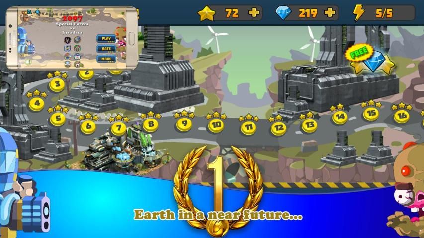 ✯ القوات الخاصة لدينا نخبة والجنود الشجعان. كل جندي لديه مهارة مختلفة، والقوة، ويشكل يمكن أن فريق قوي هزيمة كل شيء. وحتى الآن، دعونا تقودك القوات الخاصة لقتل الغزاة وإنقاذ المدينة. الى جانب ذلك، لديك أيضا مهارات مختلفة لمساعدتك على الكثير من في هزيمة القوات. انه لشيء رائع أن تتمكن من استخدام الذهب الخاص بك، جوهرة لترقية جندي الخاص والمهارة للحصول على السلطة أفظع.