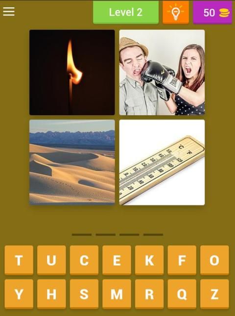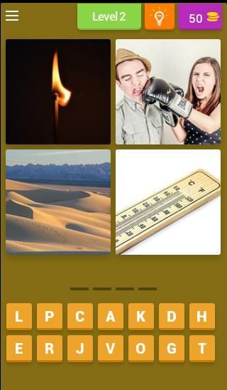 لعبة الكلمة الأكثر شعبية في جميع أنحاء. تحدي المهارات المعرفية واختبار المفردات الخاصة بك بطريقة الخالدة. تخمين كلمة من أربع صور معينة. مناسبة لجميع الأعمار. لعب في أي وقت وتفقد نفسك في عالم مدهش من الكلمات والصور. ما مجموعه 260 مستويات مثيرة المتاحة.