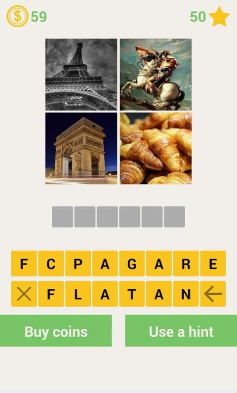 هناك أكثر من مستويات المئات في اللعبة. في كل مستوى الذي يتم إعطاء 4 الصور التي تحاول أن أقول لك شيئا. مهمتكم هي لتخمين ما تحاول هذه الصور ان اقول لكم.