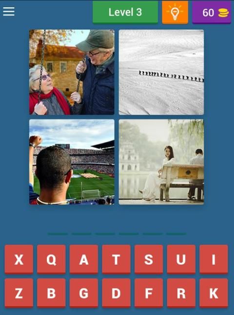 لعبة الكلمة الأكثر شعبية في جميع أنحاء. تحدي المهارات المعرفية واختبار المفردات الخاصة بك بطريقة الخالدة. تخمين كلمة من أربع صور معينة. مناسبة لجميع الأعمار. لعب في أي وقت وتفقد نفسك في عالم مدهش من الكلمات والصور. ما مجموعه 260 مستويات مثيرة المتاحة.