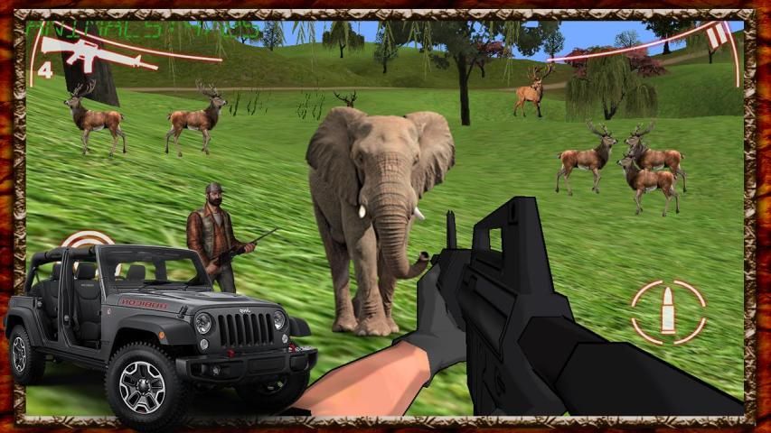 وقتها للاستمتاع مغامرة صيد حقيقية. كنت صياد المهنية ومطلق النار الكمال. تدفع لك 4X4 جيب في الغابة والبحث عن الحيوانات البرية. عندما تجد حيوان يخرج من جيب واطلاق النار على الحيوانات مع بندقيتك. الغابة مليء من كل نوع من الحيوانات البرية. يمكنك اصطياد الغزلان والفيلة، القفر، ويمكن أيضا التمتع اطلاق النار صيد حيوان خطر مثل الخاصرة والدببة.