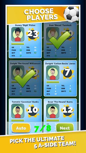 Start from the bottom of and lead your five a side team to eternal glory! 5 a side legends allows you to manage your very own 5 a side team with all the drama, excitement and banter of real life.