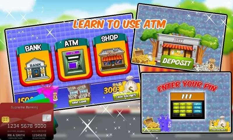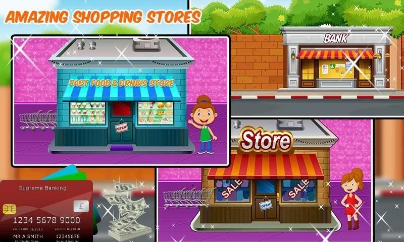 بدء هذا الجهاز محاكاة عن طريق فحص الحساب وإيداع نقدي في البنك والذهاب للجهاز لسحب المال، أدخل الرقم السري، وأخذ كمية النقدية الخاصة بك والبدء في التسوق لرئيس سوبر ماركت للتسوق مول نحو متجر لعبة في هذا التعلم أجهزة الصراف الآلي وبقالة سوبر ماركت وقصة لعبة محاكاة. تتمتع المصرفية عبر الهاتف المحمول والتعامل المبلغ الذي تريد من الجهاز النقدية لتحسين إدارة المال في هذه الأطفال متعة عارضة بطاقة الصراف الآلي آلة محاكاة وسوبر ماركت بقالة متعة التسوق الهوس ونعم، لا ننسى للعب آلة مخلب الألعاب المصغرة لهذه اللعبة أكثر متعة في الوقت المعطى في هذه الإدارة الألعاب.