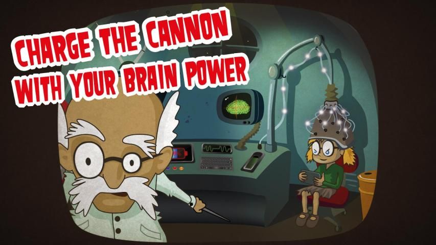 ويعتقد الأجانب الدماغ أنهم أذكياء للغاية وأنها قد وصلت إلى الأرض على امتصاص قوة الدماغ عن الاطفال لمواصلة النمو الدماغ. وقد اكتشف البروفيسور Cerebelum هذه الحقيقة، وقامت ببناء مدفع سوبر لتخويف الغزاة مع موجات الدماغ. نسأل اعبين لاستخدام أجهزتهم النقالة المتصلة مختبر البروفيسور للعب الألعاب المصغرة من أجل توليد الطاقة في المخ والمسؤول عن مدفع لاطلاق النار على الأجانب.