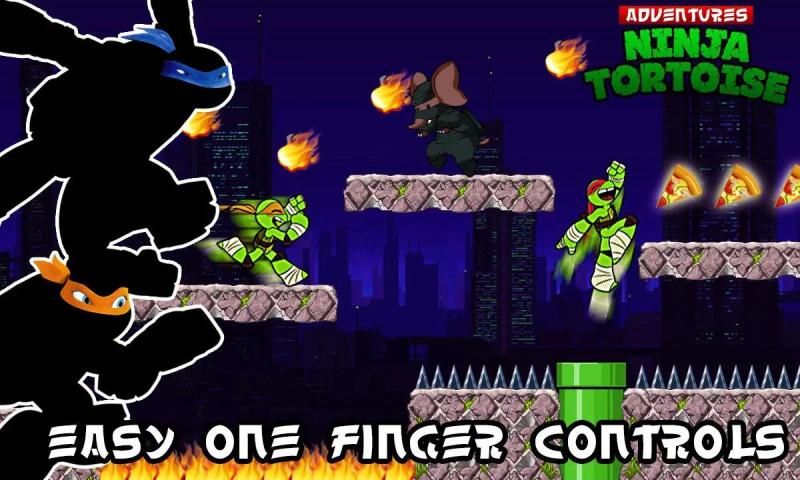 تاريخ السلحفاة الساموراي في مغامرة عمل مثيرة! بطل النينجا هو في مهمة خطيرة. توجيههم للدفاع ضد النينجا العدو وإحلال السلام في المدينة. على طول البعثة، فإن السلاحف شجاعة تواجه العديد من العقبات الخطيرة والعدو وانه سوف تحتاج إلى تشغيل والقفز فوق لإكمال المستوى.