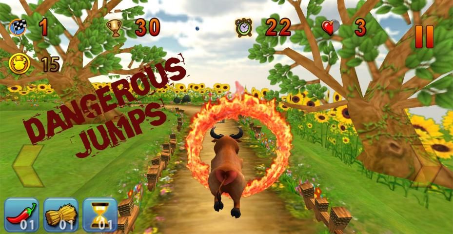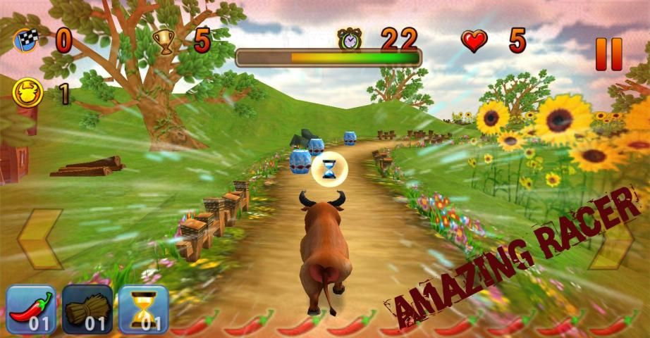 Entertaining racing game in which you can get a lot of variety of awards and gold coins to improve the bulls and cows for running in amazing levels.