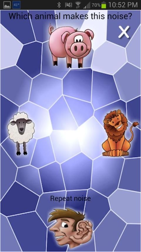 # 2: التطبيق يلعب الضوضاء الحيوانية ويسمح للأطفال اختيار الحيوان الذي يجعل من هذا الضجيج.