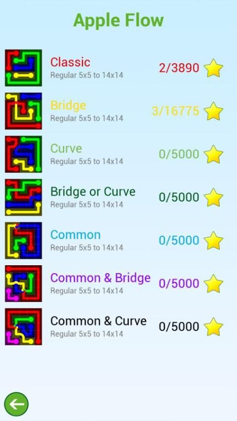 - أبل تدفق الألوان الجديدة حزمة حجم تحتوي على 10 × 10 - 14 × 14 المستويات، ويمكن أن تقوم به في 9 × 9 حزمة الهوس. واضاف لدينا أيضا خيار للعب جميع المستويات بأسرع ما يمكنك.