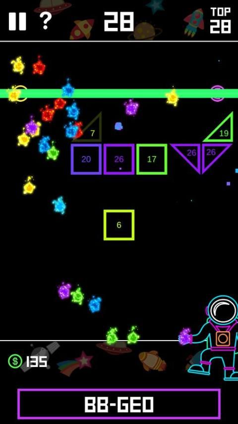مساعدة علي وقف الكويكبات هندسة الفضاء من الوصول إلى الأرض في هذا الادمان الرجعية الطوب الكسارة على غرار لعبة BBGEO. مرر لأسفل وتهدف إلى إطلاق العنان الكرات وتدمير الأشكال نازلة. كل منعطف يخرج موجة جديدة من الطوب ومعها فرصة لزيادة كومة الكرة لمساعدتك على تجنب الكويكبات الهندسية.