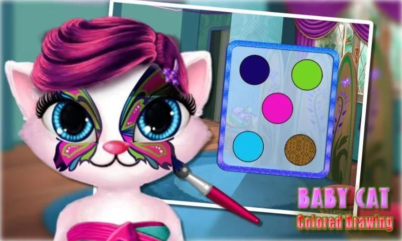 1. الطفل اللوحة وقت الفراغ، مع رائعتين كيتي الحيوانات الأليفة قليلا معا لرسمه