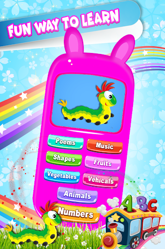 Baby Phone هي لعبة تعليمية رائعة تهدف إلى الأطفال 6 أشهر وما فوق لتعلم الأرقام والأصوات الحيوانية والقوافي الخزى والتذوهات والملاحظات الموسيقية أثناء اللعب. سوف تقوم لعبتنا بتحويل الهاتف الذكي إلى هاتف للأطفال. هاتف للأطفال داخل الهاتف الحقيقي. مدهش. أليس كذلك؟ طفلك سوف يحب التصميم والأصوات. هذه اللعبة التعليمية الموسيقية ستتمتع بأطفالك لساعات لأن طفلك سوف يتغذى بهاتفك الذكي الحقيقي.