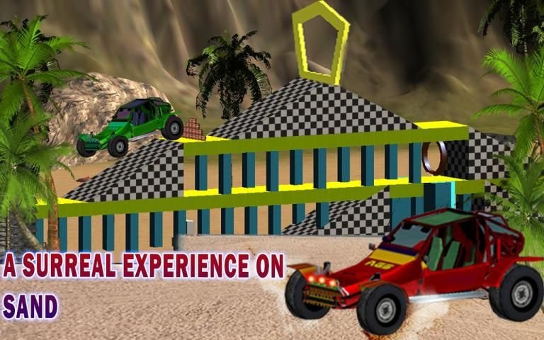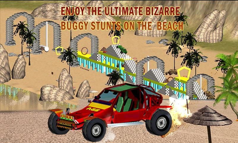 This stunt buggy rider game brings a surreal mayhem to the beach. Get ready for some wildest and craziest beach stunts and dune buggy driving, drifting on the tropical sandy shore. Thrilling ramps, hoops, loops, pendulum swing make this dune beach ride outrageously fun. Steer this 4x4 quad bike carefully through the bizarre spectacles on the tricky tracks of the rad topical 3d environment with awesome Scenic ocean views.