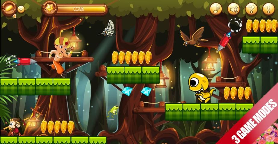 Bheem الغابة قلعة تشغيل لعبة مغامرة الغابة التي بطلك يمكن القفز، تشغيل واطلاق النار على العدو.