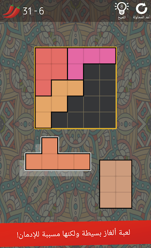 قم بربط الكتل ببعضها لملء الفراغات الموجودة باللغز.