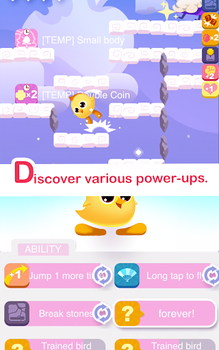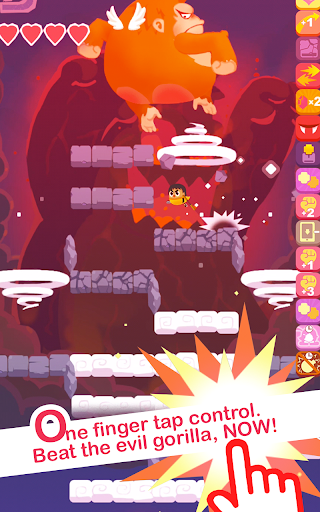 One finger tap control. Can the lovely chick beat the evil gorilla? Come and try, come back and tell us about your achievements. Get rewards and buffs to help you jump further. Beat the evil gorilla, now!
