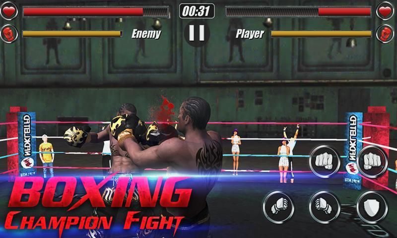 من السهل الانزلاق وشاشة لمس إحداث باستمرار ضرب بارد. سيد يسار / يمين هوك، لكمة مستقيمة، طعنة، لكمة البديل والساق سوط، ركلة جانبية، وهلم جرا للسيطرة على زعيم المجلس. تقدم الملاكمة بطل مكافحة مشجعي اللعبة القتال على ضخ الأدرينالين عالم العمل الملاكمة. في محاولة لضرب عدوك في المسافة الصحيحة لجعل الضرر أقوى.