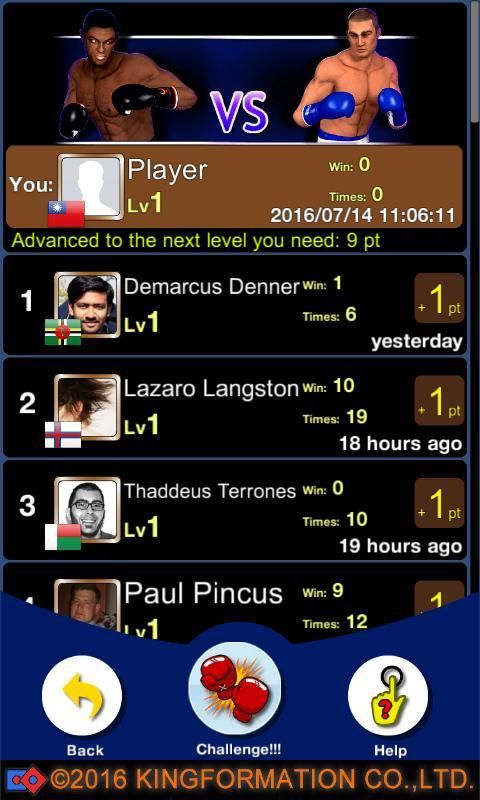 الملك لعبة الملاكمة الصور 2D الحقيقية تماما المقدمة بداية المباراة كنت ترغب في اختيار الدور، ثم لتحدي لاعبين مختلفين، وكلما ارتفع مستوى، واجه أقوى المعارضين، حيث أن يمسك واغتنم هذه الفرصة لمهاجمة نقاط الضعف كل منهما لديها فرصة للفوز.