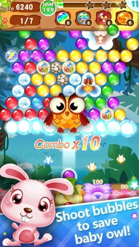 • الأرنب لطيف: يضيف فقاعة الحياة لزيادة الطلقات، فقاعة البوب مع مساعدة من الزملاء الأرنب لطيف.