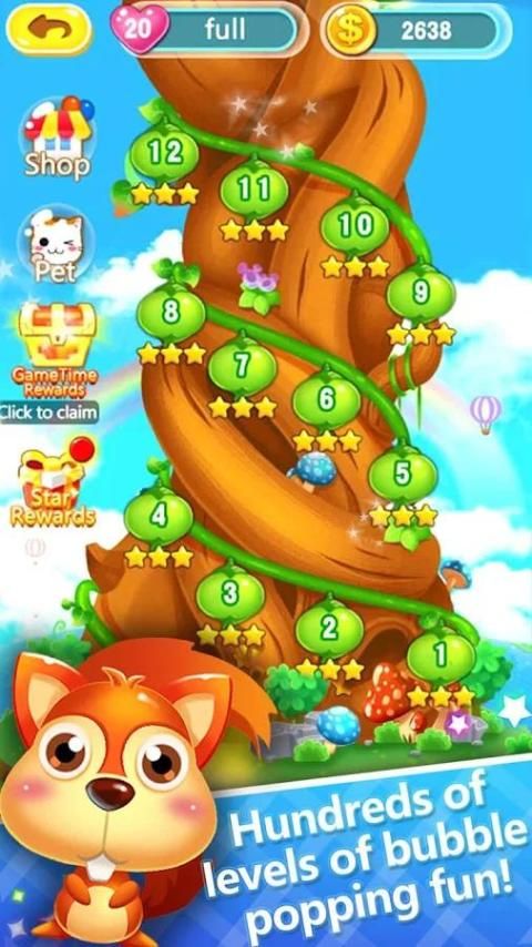 الهدف، النار والبوب نفس اللون فقاعة المباراة 3، بوبينغ كل فقاعات ملونة في النار محدودة، دون توقف الحيوانات الأليفة البوب المغامرة، حل مشكلة فقاعة، الاندفاع وتشغيل للعثور على خرافة عالم المدينة في السماء العليا من العملاق ساق الفاصوليا.