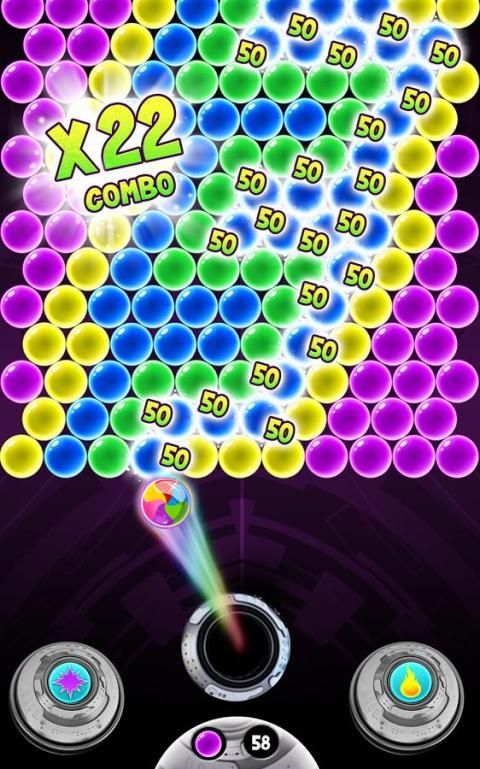 * إسقاط 10 فقاعات في طلقة واحدة للحصول على قنبلة نووية.