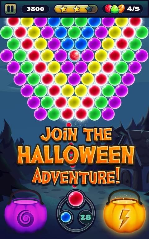 خدعة ام حلوى! جمع أكبر قدر ممكن من الحلوى وقت ممكن، والبوب جميع الفقاعات والفوز مستويات التحدي! تحميل مجانا والتمتع أكثر من 100 المستويات شبحي محملة يعزز رهيبة وشكا من السلطة! الانضمام إلى مغامرة عصبي اليوم، وتشكيل مجموعة من 3 أو أكثر من فقاعات من نفس اللون لموسيقى البوب. تأكد من جمع كل الحلوى اللذيذة محاصرين في فقاعة من أجل مسح المستوى. كن جزءا من احتفالات الأعياد، وتغلب على جميع التحديات لكسب مستويات بجد لكسب جوائز مذهلة!