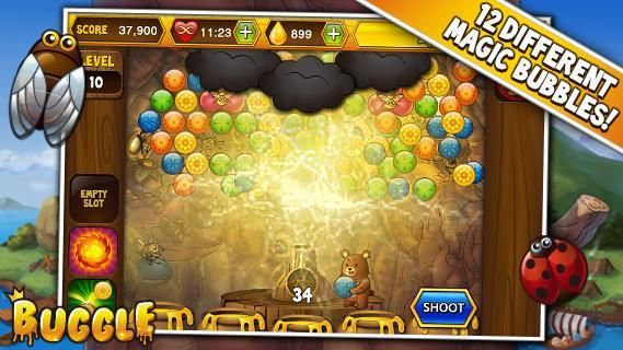 لعب Buggle! تبادل لاطلاق النار فقاعات ملونة لجمع العسل واكتشاف الكنوز الخفية!