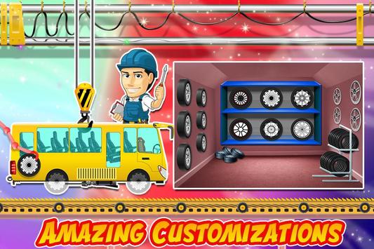 ببساطة اختيار الجسم، واختيار أجزاء، تجميع هيكل الجسم، وإصلاح إطارات السيارات والطلاء شاحنة حافلة هذا في المرآب. هذا الهوس حافلة لعبة صانع هو متعة مجموع وسائل الترفيه للرعاية شاحنة لعبة غسل العشاق. تصل قيمتها برنامج تشغيل واجب المحمول حافلة / السيارة محرك مسامير، والأنابيب، والحزم، ومسامير مع مفك البراغي مع تاكل اللوحة، الخدوش من ميكانيكي الماجستير من بلدة المرآب صالون الأفق.