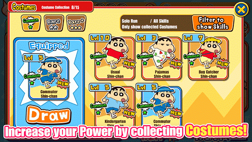 ● It's possible to collect new costumes and gather your buddies from the Kasukabe Defense Corp!