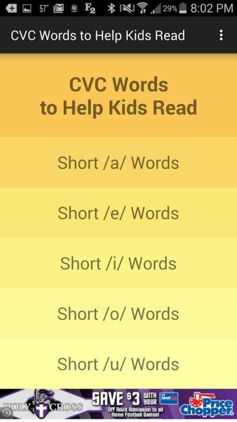 CVC الكلمات لمساعدة الأطفال القراءة هو أداة مهمة لمساعدة الأطفال على تعلم كيفية القراءة. فمن المناسب لطلاب مرحلة ما قبل المدرسة، طلاب الروضة، الصف 1 و 2 الطلاب، وحتى ESL (اللغة الإنجليزية كلغة ثانية) ومتعلمي اللغة الإنكليزية (متعلم اللغة الانجليزية) طالبا وطالبة.