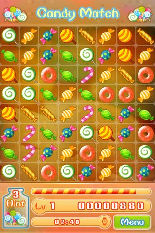 Swap and slide lovely candies on the board, arrange candies into matching groups of three or more to collect. Chain rection could happen when empty spaces are filled in. The longer the chain, the higher the score you can get in one shot.